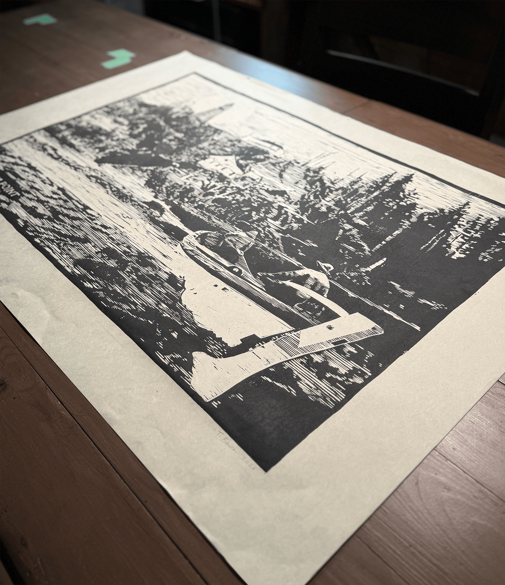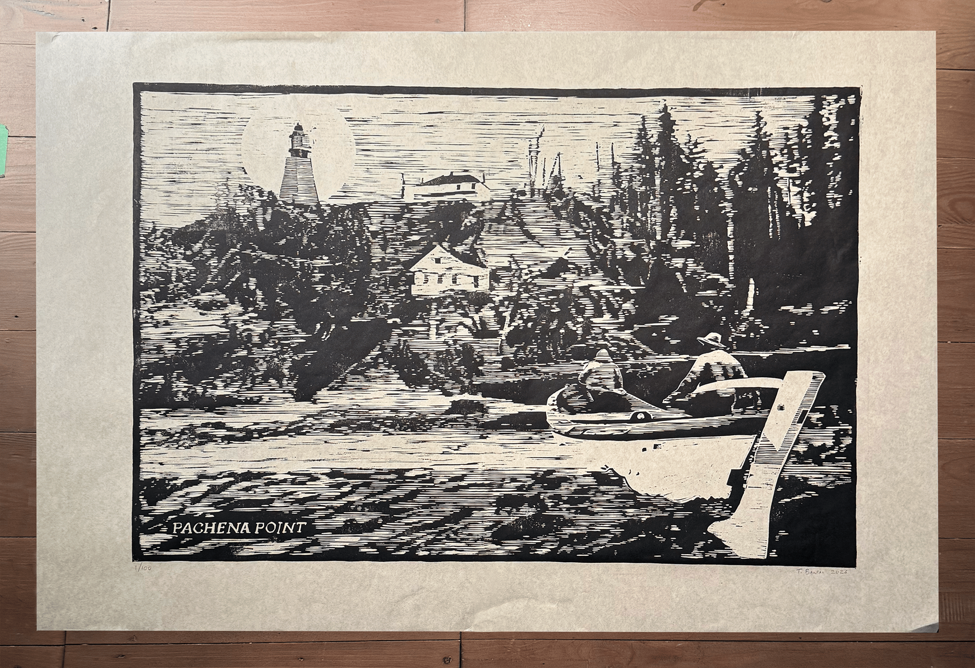 "Pachena Point" - Linocut print on Japanese Washi paper